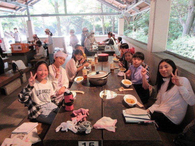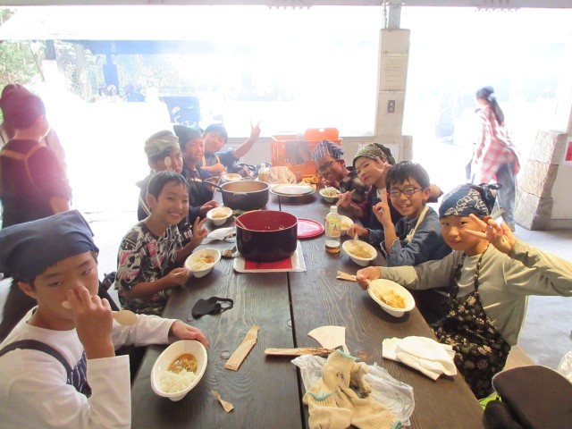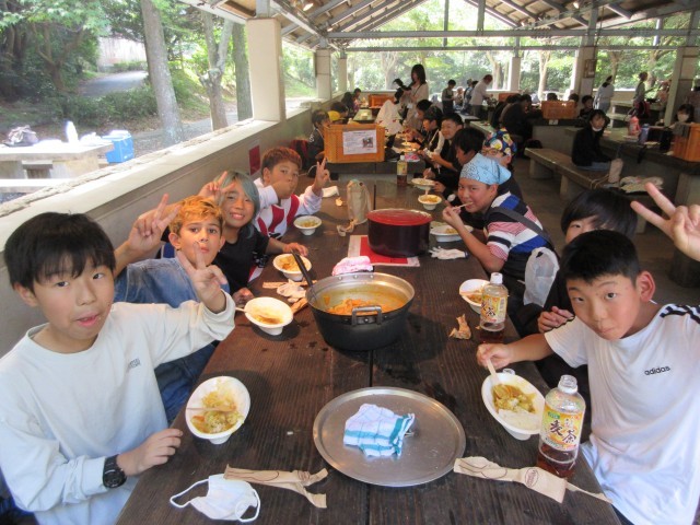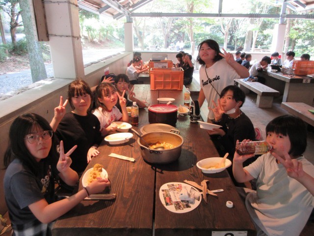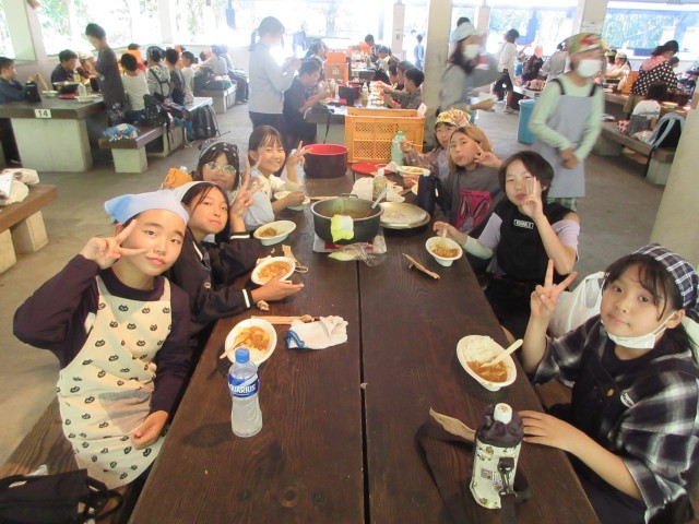 野菜が固い班、水の量が多くしゃびしゃびになってしまった班、美味しくできた班など、色々な班がありましたが、どの班も笑顔で食べていました。良い思い出になりましたね!