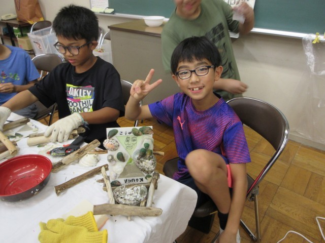 流木を使って、とても立体的な土台を作っている人もいました。素敵な作品ができました。