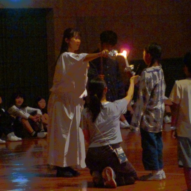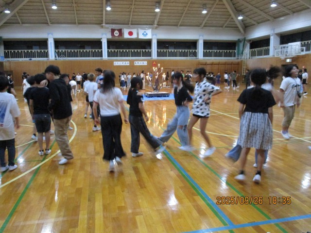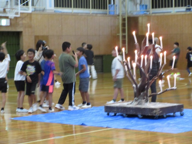 1日目のキャンドルサービスの様子です。猛獣狩り、マイムマイム、ジェンカ、バースデーチェーンの4つのレクを行い、みんなで楽しい時間を過ごしました。