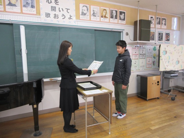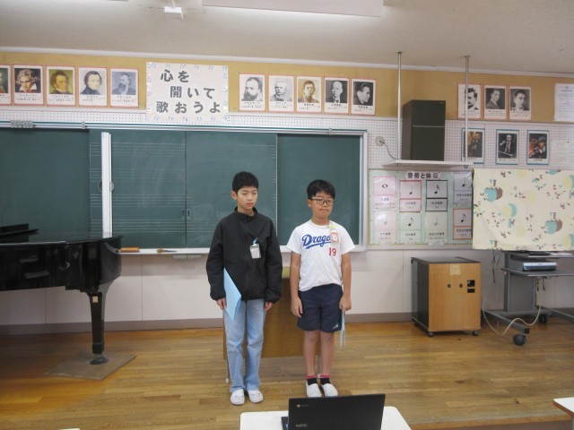 表彰伝達の後、代表児童が2学期にがんばったことを発表しました。
