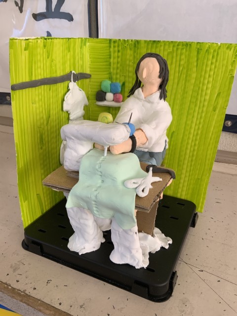 将来の自分の姿をイメージして、粘土で制作しました。