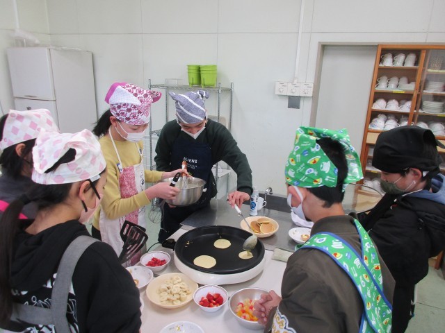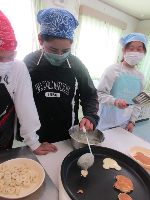 1組はホットケーキの形にこだわりながら焼き上げました。