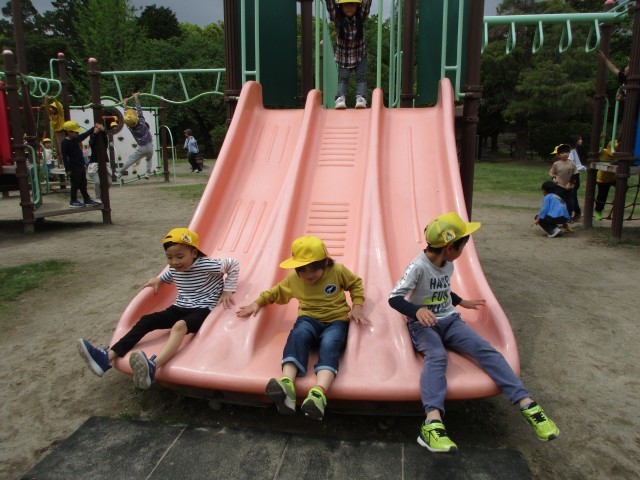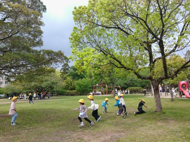 2年生のお兄さんお姉さんと手をつないで歩いて行きました。
