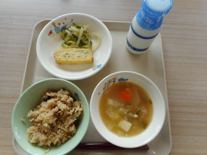 とうがんじる みかわあかどりのごもくごはん ぎゅうにゅう