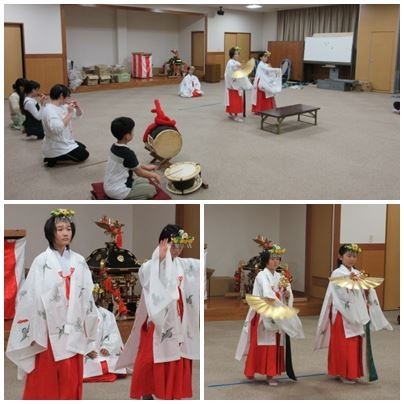 太鼓と笛が演奏される中で、当日の衣装を着て、舞を披露しました。