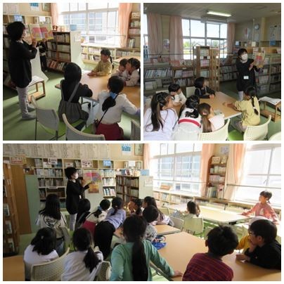 放課に図書館で食をテーマに司書の先生が読み聞かせをしました。