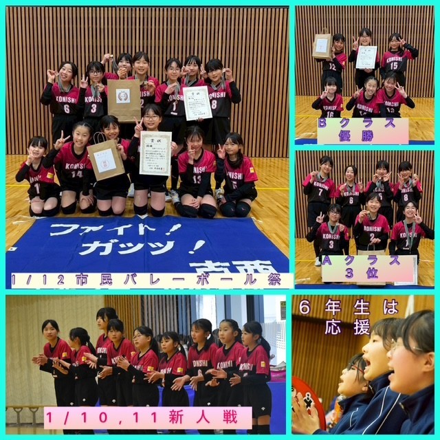 1/10,11愛知県小学生バレーボール新人大会尾張支部大会、1/12江南市民バレーボール大会が開催されました。まず新人戦。5年生以下のデビュー戦です。試合には何度も出た子達ですが6年生なしの試合緊張や不安そしてプレッシャーをたくさん感じた大会になりました。まだまだこれからのチーム、みんなで成長していきましょう!