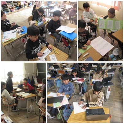 2年生が生活科の時間に、できるようになったことをまとめた「巻物」を作っていました。