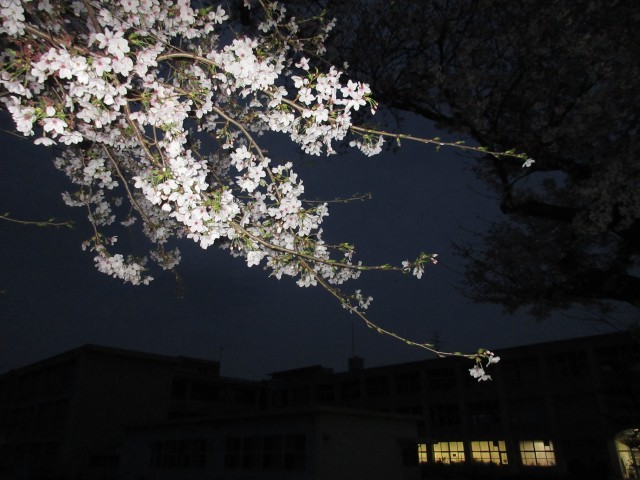 日が暮れました。桜の様子です。