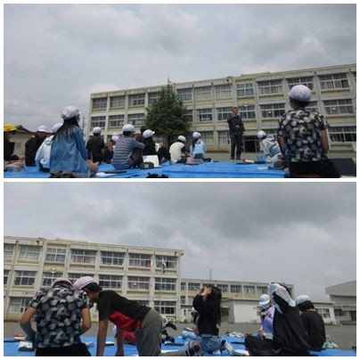 ブルーシートが敷かれているので、子どもたちは思い思いの格好でリラックスしながら観察をしていました。