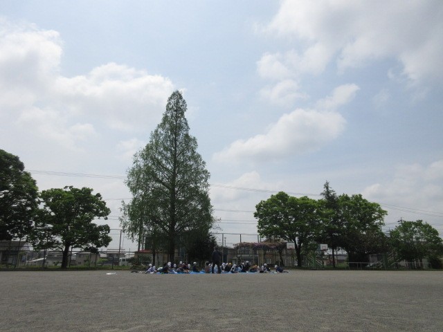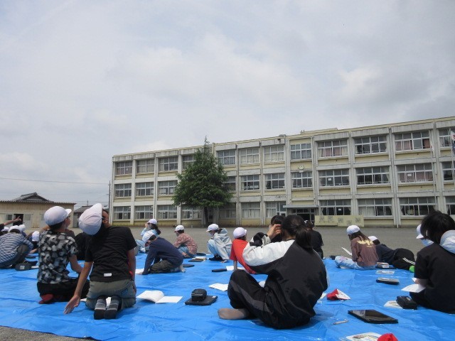 運動場にはブルーシート。5年の児童が天気の様子を観察していました。