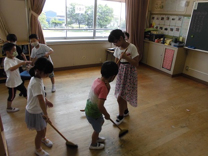 掃除の時間には、1年生の子に掃除の仕方を優しく教えながらがんばってくれています。いろんな場面で下級生に優しく接する姿が見られて素晴らしいです。