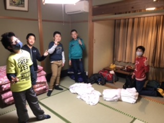 ふとんをたたみ、部屋の片付けをします。
