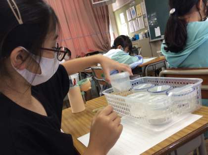 今日は、石塚硝子の方に出前授業をしていただきました。ビンのリサイクルの仕方について詳しく教えていただきました。普段給食で飲んでいる牛乳ビンが約30回使っていることなど、面白い話をたくさん聞かせていただきました。