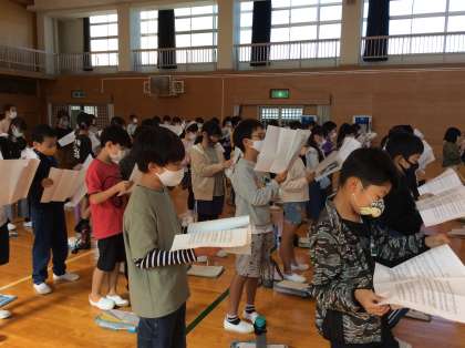今日は、ごんぎつねのオーディションをしました。体育館で大きな声でオーディションを受けていました。みんなのやる気が伝わってきました。その後、歌の練習を行いました。