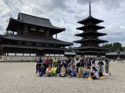 金堂の前でハイポーズ