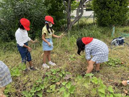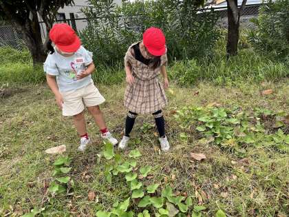 昼休みの時間にボランティアでさつまいもの草を抜いていくれる子を発見!