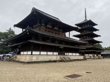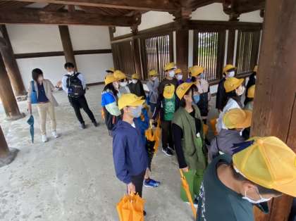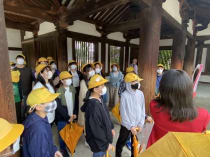 金堂の説明を聴いています。