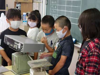 算数では、はかりの使い方をべんきょうしました。いろいろな物をはかるのに、どのはかりを使うのがいいのか、考えながら楽しく学びました!