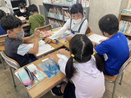 国語では、「ちいちゃんのかげおくり」をべんきょうしています。文章のどの言葉からどのような気持ちが読み取れるか話し合いました。