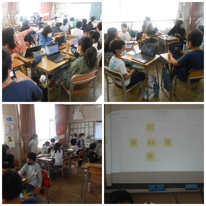 子どもたちが各々作った熟語のパズルをみんなで解いていました。
