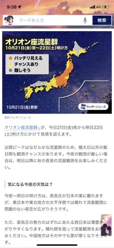 今夜は、オリオン座の流星群がみえます。