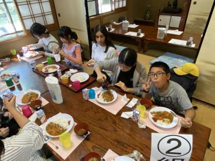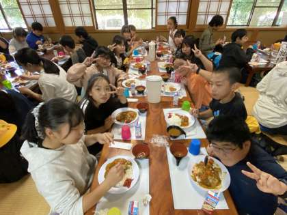 おかわりをする子どもたちもいます。朝食が早かったからかな。