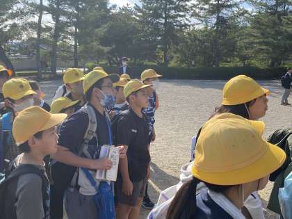 ガイドさんからお話を聞いています。