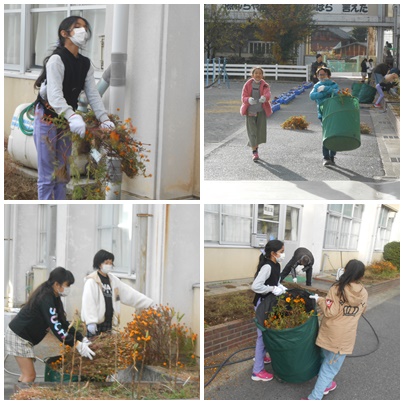 わずかな活動時間でしたが、一生懸命がんばって、花を片付けてくれました。春の季節には、この花壇にどんな花が咲くのか楽しみです。