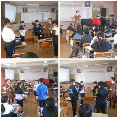 ドレミファソの5音を使って、4拍子のリズムを作り、次の人へつなげていきます。最後の人は、リズムが終わるように音を作るという学習です。