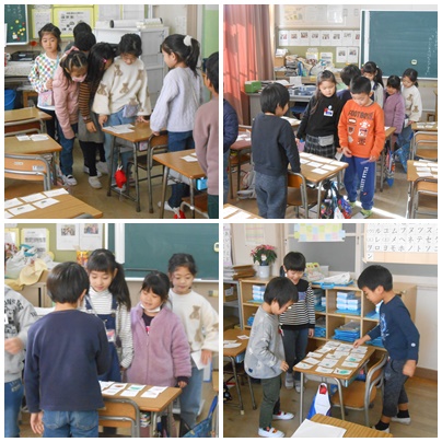 国語の授業で、先週、ものの名前について学習していました。そのものの名前を活用して、今日はお店ごっこでした。