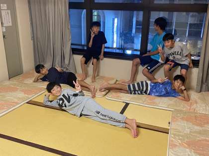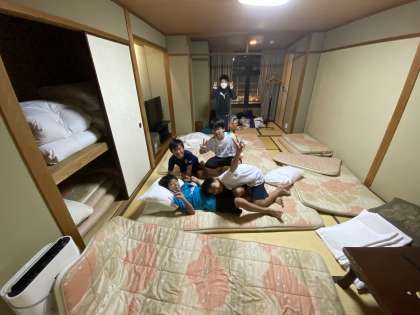 布団を敷きながら、ゆったりと時間を楽しんでいます。