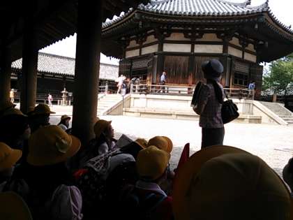 法隆寺夢殿を見学中。