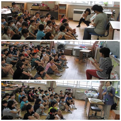 今日は5年生2クラスと、1年2組で行っていただきました。どのクラスも落ち着いた様子で、物語を聴き入っていました。ありがとうございました。<(_ _)>