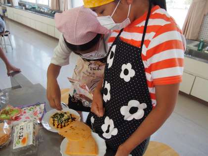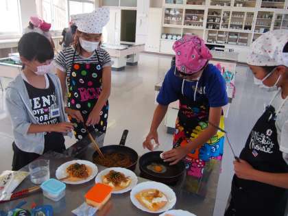 調理クラブは本日「たません」をつくりました。どの班も卵を上手に割り、焼くことができました。やきそばなどを入れている班もありました。おいしくできたようです。