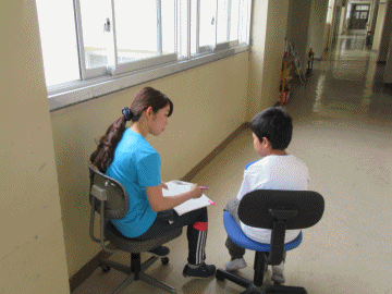 子どもたちにアンケートをとり、それをもとに「教育相談」を行っています。
