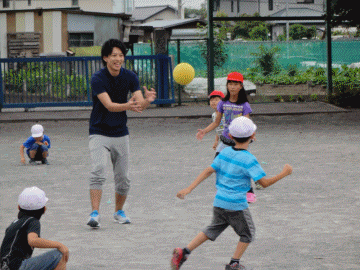 いっしょにドッジボールやおにごっこを楽しみました。