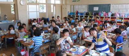 おいしいね。今日、いっしょに英語活動をしたカミダ先生も来てくださいました♪