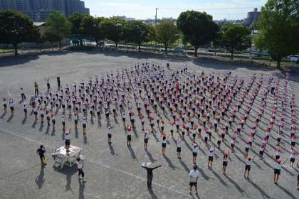 よい天気になり,運動場でラジオ体操の練習をしました。