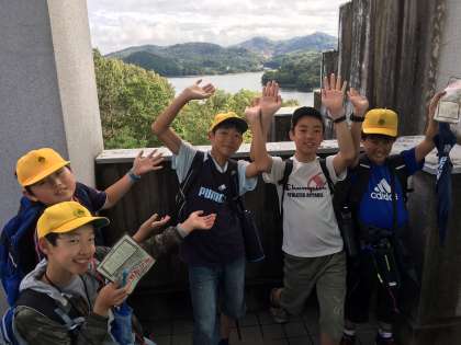 入鹿池の前にて(6年生)