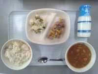5月18日は,5をファイブ,1をイ,8をバーと読み,食物繊維の日です。干し野菜や山菜,海藻など食物繊維がたっぷりとれるメニューにしました。