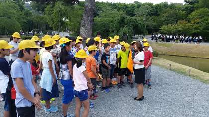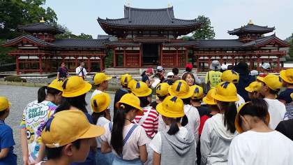 ガイドさんの説明を聞きながら、平等院を見学しています。