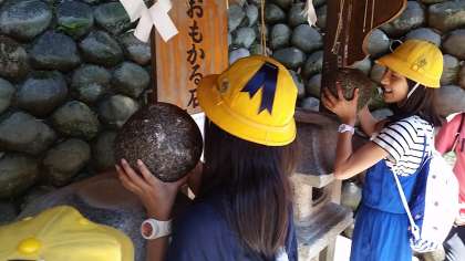 写真を撮ったり、おもかるいしを持ったりしています。