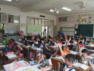 今日の算数では,数字の大きさ比べをしました。体で不等号を表しています。子どもたちは,どちらの数字が大きいかを理由を述べながら,発表していました。