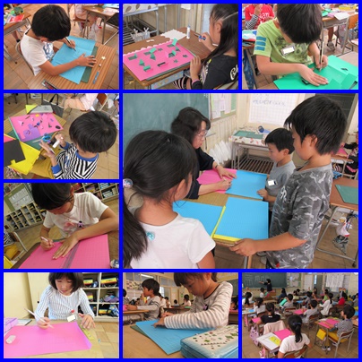 今日はカッターを使って、まどをひらいてのまどを作りました!色々な形のまどを作っていて、むずかしい形もカッターを使いこなして、切っていました。