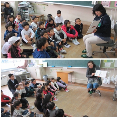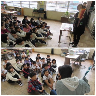 読み聞かせが始まると、みんな目を輝かせ聞き入っていました。