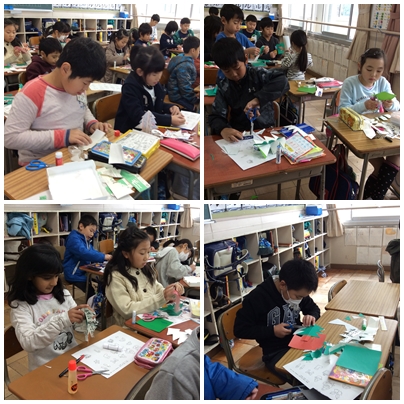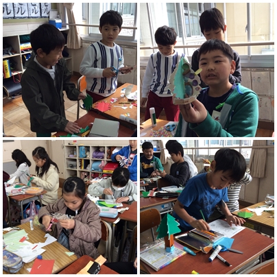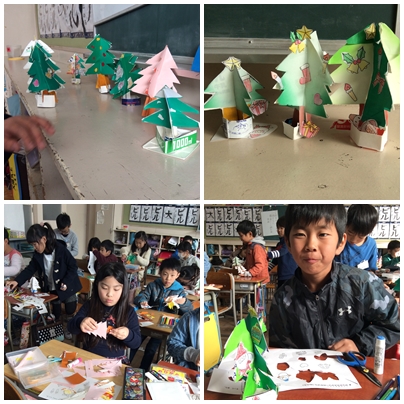 今日の図工は、先週の「クミクミックス」を応用してクリスマスツリーを作成しました。