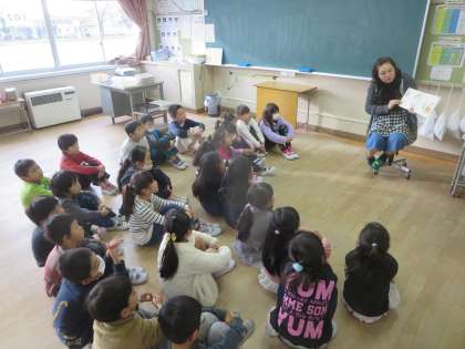 今朝は「えほんの森」の方が読み聞かせに来てくれました。