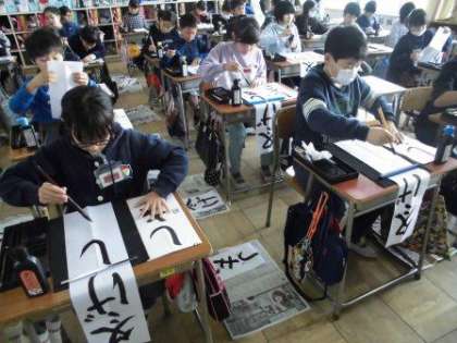 書き初めにチャレンジ(4年生)