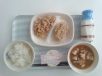 きな粉は大豆を炒って細かく粉砕したもので、昔から和菓子の材料として親しまれてきた食材です。今日は揚げパンにきなことグラニュー糖をまぶしてあります。